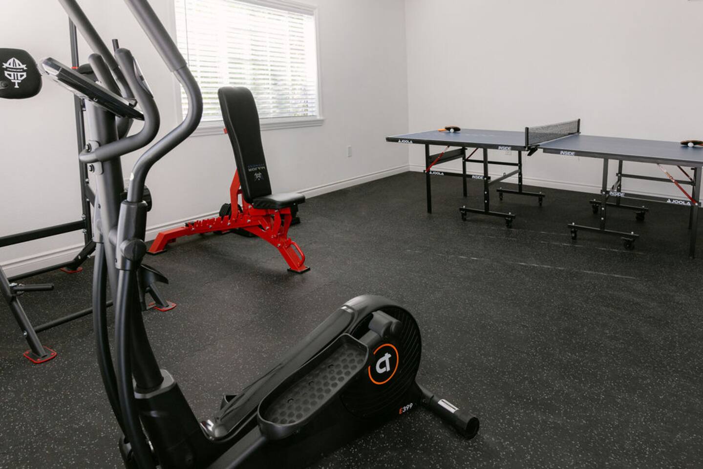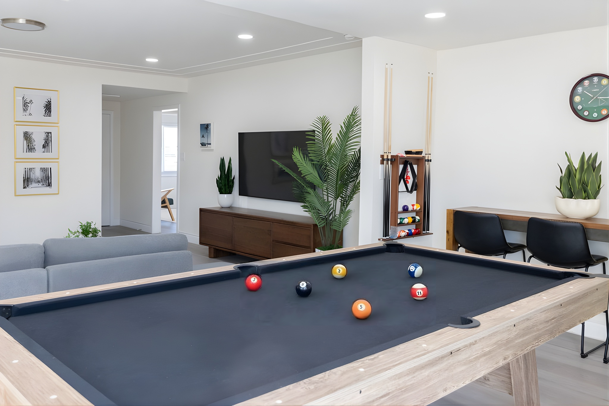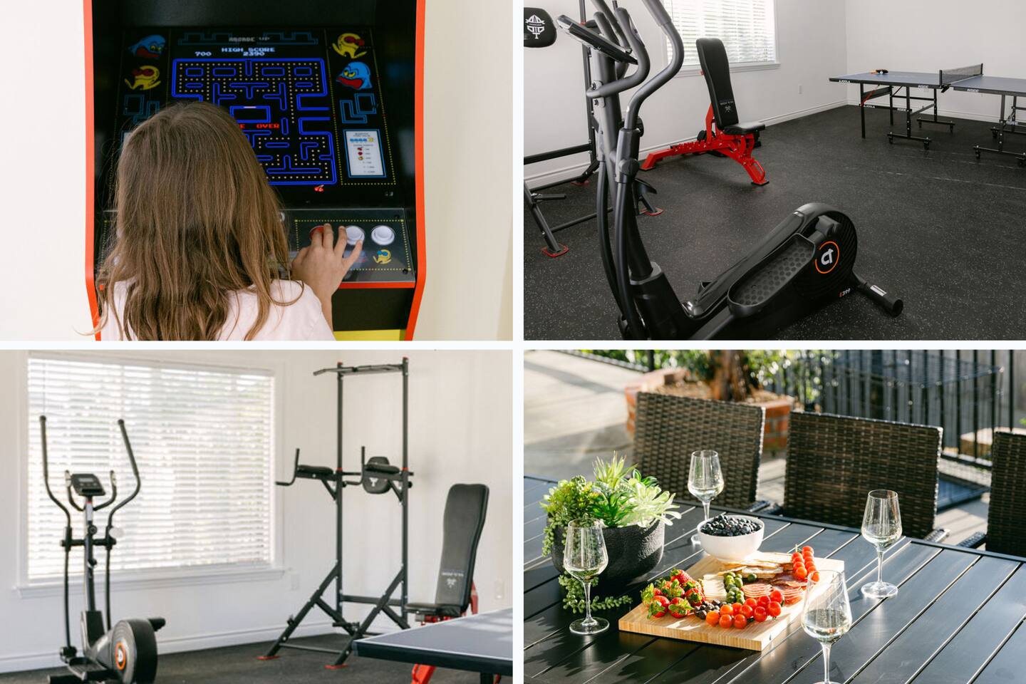 Welcome to Markland Stay, where modern luxury meets Hollywood adventure. This spacious retreat offers cozy living areas, a gourmet kitchen, BBQ grill, and a game zone with pool, ping pong & arcade games. Stay active in the gym with an elliptical, free weights & yoga mat. Enjoy 6 spacious bedrooms incl. 2 king suites with ensuites, a Tesla EV charger and 3 smart TVs. Minutes from Topgolf, parks, and a short drive to Universal Studios—your perfect SoCal home base for large families and groups!