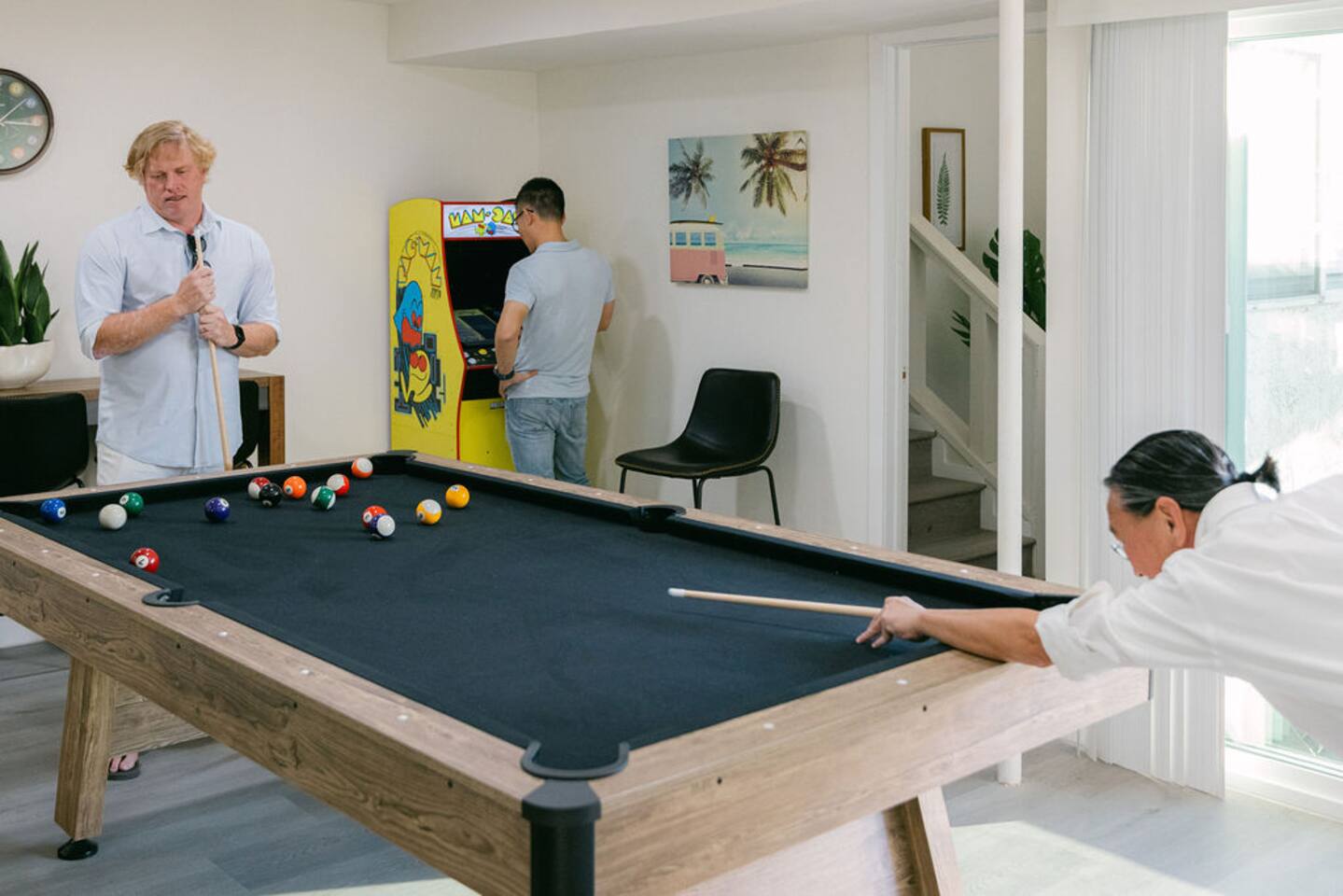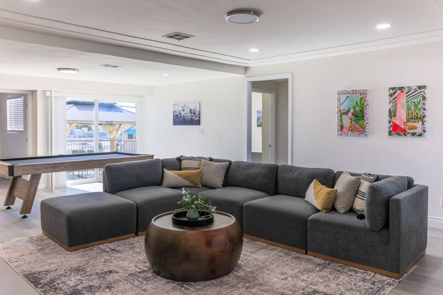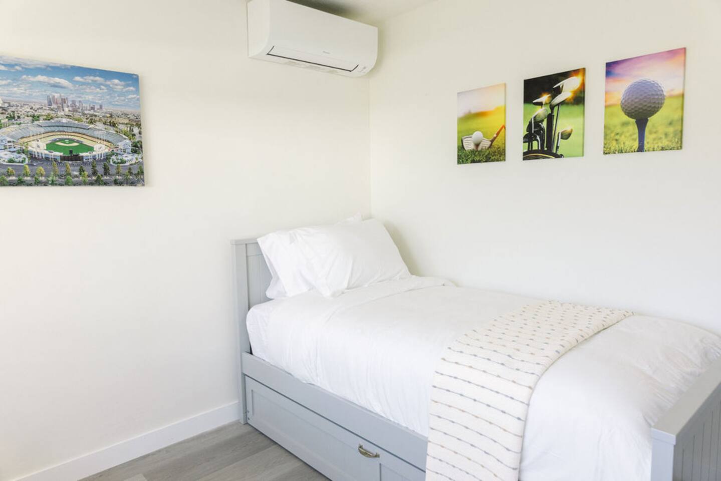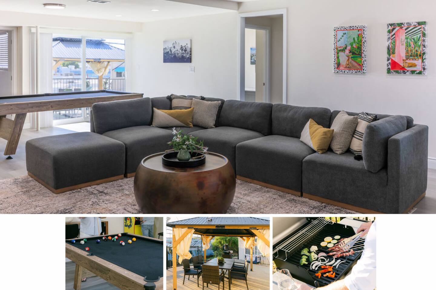 Welcome to Markland Stay, where modern luxury meets Hollywood adventure. This spacious retreat offers cozy living areas, a gourmet kitchen, BBQ grill, and a game zone with pool, ping pong & arcade games. Stay active in the gym with an elliptical, free weights & yoga mat. Enjoy 6 spacious bedrooms incl. 2 king suites with ensuites, a Tesla EV charger and 3 smart TVs. Minutes from Topgolf, parks, and a short drive to Universal Studios—your perfect SoCal home base for large families and groups!